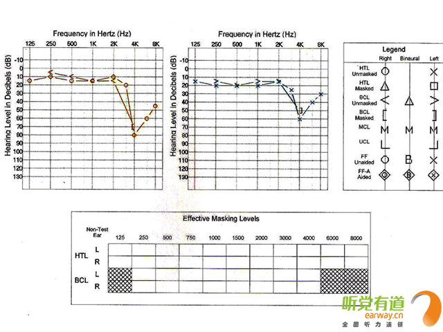 <span style="font-size:16px;"> 首先聽覺有道跟大家解釋一下純音測聽的定義以及臨床意義。純音測聽包括氣導聽閾測試(AC)和骨導聽閾測試(BC),以耳機及骨導振子給聲,反應受試者在安靜環境下能夠聽到的各個頻率的最小聲音的聽力級(氣導頻率范圍125-8000Hz,骨導250-4000Hz)。它是目前能準確反映聽敏度的主觀行為測試方法之一,在臨床上是最基本最重要的聽力檢查方法。</span></p><p><span style="font-size:16px;"><br /></span></p><p style="text-align: center;"><span style="font-size:16px;"><img src="/upfiles/201803010200415958.jpg" align="middle" alt="" /><br /></span></p><p style="text-align: center;"><span style="font-size:16px;"><br /></span></p><p><span style="font-size:16px;"> 先整體看一下聽力圖,它的橫坐標是純音的頻率,縱坐標表示的是聽力級(單位為db HL),從上往下看數字是變大的。0表示聽力零級,簡單地說就是科研人員測了很多聽力正常男女的聽力,以他們能聽到的最小聲音作為聽力零級。所以如果你的聽力是正常的話,聽力圖上的閾值曲線應該在零附近浮動,如果你聽力超常,那就在0以上也就是為負值了。如果你聽力下降,那線就往下走,越往下就說明聽力損失得越多。從生活常識上理解,所謂聽閾聽閾,閾值越低表示你能聽到越小的聲音,聽力就越好,閾值越高,聽力越差。</span></p><p><span style="font-size:16px;"> 接著說一下聽力圖上的圈圈叉叉代表的意思。叉叉表示左耳的氣導聽閾,圈圈表示右耳氣導,開口向左的尖括號表示左耳骨導,開口向右的表示右耳骨導。旁邊的masked表示加掩蔽之后的聽力。</span></p><p><span style="font-size:16px;"> 為什么要加掩蔽呢?舉個例子:你右耳聽力比左耳好,當你左耳給聲強度很大,會出現你左耳其實沒聽見但右耳偷聽到了的情況,這時你就會反應,但是這時你的反應能代表左耳的聽閾嗎?肯定比你實際聽閾要好,所以測聽人員會在你右耳加噪聲,不讓你右耳偷聽左耳的聲音,這樣測出來的左耳聽力稱掩蔽之后的聽閾。左耳掩蔽之后的氣導用小正方形來表示。同理,右耳掩蔽用小三角形表示。骨導也需要掩蔽。左耳掩蔽后骨導用向左的方括號表示,右耳用向右的方括號表示。</span></p><p><span style="font-size:16px;"> 最后我們該如何分析聽力圖。簡單地說,氣導的傳聲路徑包括外中內耳以及神經部分,骨導只包括內耳和神經部分,因此出現骨氣導差則表明聽覺通路上有外中耳病變??紤]到各種誤差因素,一般認為骨氣導相差10db HL屬于正常范圍。根據骨氣導的關系可以將聽力損失分為傳導性聽力損失、感音神經性聽力損失以及混合性聽力損失。骨氣導差大于10,且骨導在正常范圍為傳導性聽損;骨氣導一致且都在正常范圍以外為感音神經性聽損;骨氣導差大于10,骨導在正常范圍之外為混合性聽損。</span></p><p><span style="font-size:16px;"> 當然,如果想進一步定位聽力診斷結果,還需要結合其他的一些測試如聲導抗、ABR、耳蝸電圖、耳聲發射、40Hz、影像學檢查等。</span></p><p><span style="font-size:16px;"> 更多詳情請登錄www.hljhqw.com。</span></p>" />