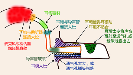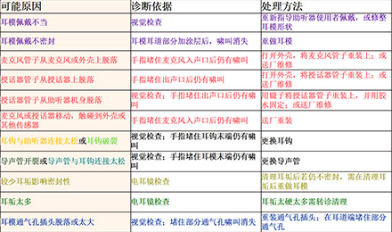 <span style="font-size:16px;"> 嘯叫,一直是引起助聽器使用者不滿的一大原因,也是驗配師在助聽器調試時最為棘手的難題之一。</span></p><p><span style="font-size:16px;"> 通常,嘯叫分內部嘯叫和外部嘯叫。內部嘯叫常由內部零件故障引起,而外部嘯叫則是與助聽器外殼或耳模,助聽器調試等有關。</span></p><p style="text-align: center;"><span style="font-size:16px;"><img src="/upfiles/201810100140556872.jpg" alt="" /><br /></span></p><p><span style="font-size:16px;"> 我們常常說的外部嘯叫是在聲音被麥克風拾取、放大器放大、授話器轉換后,又從各種縫隙(如外殼與耳道的縫隙、通氣孔)中“跑”出來,又“跑”進去,如此反復多次,使得聲音越來越大,產生“吱吱吱”的惱人嘯叫。</span></p><p><span style="font-size:16px;"> 以助聽器的角度來看,shou話器把聲音授給耳朵聽,當用“授”,即授話器。</span></p><p><span style="font-size:16px;"> 接下來將分別針對定制式(ITE/ITC/CIC)和耳背式(BTE)助聽器的嘯叫問題,跟著產生嘯叫的路徑,一一“攻破”嘯叫難題。注意,這里不說助聽器調試,只尋嘯叫路徑,并“堵死”嘯叫“通路”,讓進入助聽器的聲音“不走回頭路”。</span></p><p><span style="font-size:16px;"> 1、ITE/ITC/CIC助聽器</span></p><p><span style="font-size:16px;"> 先來看看ITE/ITC/CIC助聽器可能發生嘯叫的路徑。</span></p><p><span style="font-size:16px;"> 圖1里是一個定制式助聽器佩戴于外耳道內的示意圖,各種顏色的字和相應顏色的標記展示了發生嘯叫的各種情況。</span></p><center><span style="font-size:16px;"><img alt="" src="/upfiles/201810100142273990.png" width="440" height="250" /></span></center><p></p><p style="text-align: center;"><span style="font-size:16px;">圖1:ITE/ITC/CIC助聽器發生嘯叫的路徑一覽</span></p><p style="text-align: left;"><span style="font-size:16px;"> 例如,紅色表示“麥克風管子脫落”,這屬于助聽器內部零件脫落、故障,為內部嘯叫。</span></p><p><span style="font-size:16px;"> 橙色表示“外殼佩戴太松”,這屬于外殼不密封的聲音泄露,為外部嘯叫。</span></p><p><span style="font-size:16px;"> 那如何檢查出是這些原因,并對問題進行相應處理呢?請對照表1中的“診斷依據”和“處理方法”查看。</span></p><center><span style="font-size:16px;"><img alt="" src="/upfiles/201810100142337254.png" width="520" height="250" /></span></center><p></p><p style="text-align: center;"><span style="font-size:16px;">表1:ITE/ITC/CIC助聽器產生嘯叫的可能原因及對應的診斷依據、處理方法</span></p><p><span style="font-size:16px;"> 例如,當發現“手指堵住麥克風入聲口后仍有嘯叫”,可推斷原因是“麥克風管子從麥克風或外殼上脫落”或“麥克風或授話器移動,觸碰到外殼或其他傳感器”,這時的處理方法是“送廠維修”。</span></p><p><span style="font-size:16px;"> 2、BTE助聽器</span></p><p><span style="font-size:16px;"> 學會了看ITE/ITC/CIC助聽器的一圖一表,再來看看BTE助聽器的嘯叫路徑圖(圖2),以及表2中羅列的可能原因、診斷依據和處理方法,相信看起來更加輕松、直觀、一目了然。</span></p><center><span style="font-size:16px;"><img alt="" src="/upfiles/201810100142383483.png" width="440" height="250" /></span></center><p></p><p style="text-align: center;"><span style="font-size:16px;">圖2:BTE助聽器發生嘯叫的路徑一覽</span></p><center><span style="font-size:16px;"><img alt="" src="/upfiles/201810100142449945.png" width="462" height="273" /></span></center><p></p><p style="text-align: center;"><span style="font-size:16px;">表2:BTE助聽器產生嘯叫的可能原因及對應的診斷依據、處理方法</span></p><p><span style="font-size:16px;"> 更多詳情請登錄www.hljhqw.com。</span></p>" />