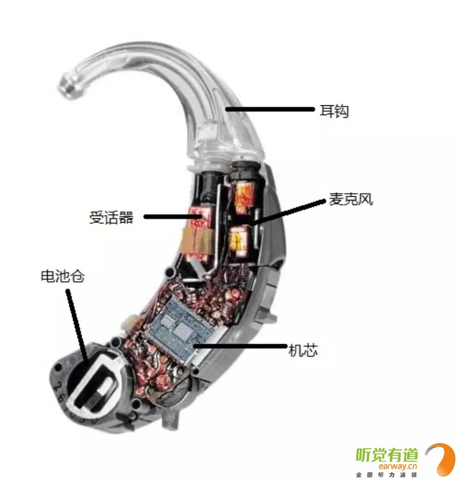 <span style="font-size:16px;"> 在助聽器發展過程中,出現過很多種助聽器,比如:盒式、眼鏡式、耳背式、耳甲腔式、耳道式、深耳道式等定制式助聽器。如今盒式助聽器、眼鏡式助聽器等幾乎已退出歷史舞臺,現在常見的助聽器有耳背式助聽器、定制式助聽器和RIE受話器外置式助聽器。</span></p><p style="text-align: center;"><span style="font-size:16px;"><img src="/upfiles/201808160127045435.jpg" width="640" alt="" /><br /></span></p><p><span style="font-size:16px;"> 接下來,我們將以耳背式助聽器為例,向您介紹助聽器的外部配件及內部構造!</span></p><p><span style="font-size:16px;"> 1、機身內部構造</span></p><p style="text-align: center;"><span style="font-size:16px;"><img src="/upfiles/201808160127276133.jpg" width="640" alt="" /><br /></span></p><p><span style="font-size:16px;"> 麥克風:獲取聲音并將聲音信號轉化為電信號。</span></p><p><span style="font-size:16px;"> 機芯:將電信號進行放大、處理,機芯包含放大器、音量調控電位器、微調電位器等。</span></p><p><span style="font-size:16px;"> 受話器:將電信號轉化為聲音信號,通過導聲管和耳模傳送給耳朵。耳背式助聽器和定制式助聽器的受話器都在機身內;RIE受話器外置式助聽器的受話器放置在耳道中。</span></p><p><span style="font-size:16px;"> 電池倉:用于安放電池來供電,使助聽器正常工作。</span></p><p><span style="font-size:16px;"> 2、電池</span></p><p><span style="font-size:16px;"> 電池放置于電池倉內,給予助聽器能量。市面上常見的助聽器電池分為4類:</span></p><p><span style="font-size:16px;"> A675:一般用于超大功率耳背式助聽器。</span></p><p><span style="font-size:16px;"> A13:一般用于標準耳背式或耳甲腔式助聽器。</span></p><p><span style="font-size:16px;"> A312:一般用于耳道式助聽器。</span></p><p><span style="font-size:16px;"> A10:一般用于深耳道式助聽器。</span></p><p><span style="font-size:16px;"> 電池大小:A675>A13>A312>A10,電池越大,儲存能量越多。</span></p><p><span style="font-size:16px;"></span></p><p> 更多詳情請登錄www.hljhqw.com。</p>" />