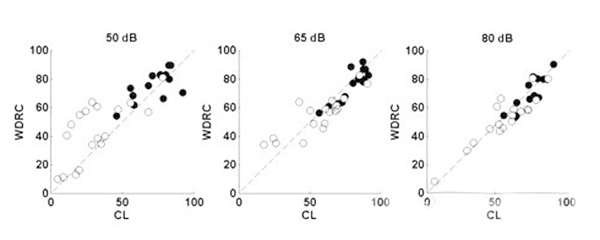 <span style="font-size:16px;"> 重度聽力損失是500Hz、1000Hz、2000Hz和4000Hz平均聽閾在61dB HL和80dB HL之間的聽力損失。重度聽損患者更趨向于:</span></p><p><span style="font-size:16px;"> 1、 聽力損失時(shí)間較久;</span></p><p><span style="font-size:16px;"> 2、 有助聽器佩戴史;</span></p><p><span style="font-size:16px;"> 3、 言語分辨率較低;</span></p><p><span style="font-size:16px;"> 4、 噪音環(huán)境中交流困難。</span></p><p><span style="font-size:16px;"> (一)重度聽力損失的特點(diǎn)</span></p><p><span style="font-size:16px;"> 60dB HL是單純外毛細(xì)胞損傷和內(nèi)外毛細(xì)胞共同損傷的分界點(diǎn),內(nèi)毛細(xì)胞受損預(yù)示著重度聽力損失,這類患者的頻率選擇能力降低,在相關(guān)頻率范圍內(nèi)難以分辨兩種聲音。這是噪聲環(huán)境下交流困難的主要原因。</span></p><p><span style="font-size:16px;"> 簡單來說,頻率選擇能力越低,自身降噪能力越差,噪聲下識(shí)別信號的能力也就越差。</span></p><p><span style="font-size:16px;"> (二)選擇合適的放大策略</span></p><p><span style="font-size:16px;"> 反饋抑制:這項(xiàng)技術(shù)在傳統(tǒng)方法的基礎(chǔ)上有更好的減少嘯叫的效果。</span></p><p><span style="font-size:16px;"> 指向性麥克風(fēng):有指向性功能的助聽器可以明顯提高信噪比(SNR)。現(xiàn)在自適應(yīng)指向性麥克風(fēng)廣泛地應(yīng)用于大功率耳背機(jī)中。</span></p><p><span style="font-size:16px;"> 對于噪聲下言語交流困難的重度聽力損失患者,選配帶有指向性麥克風(fēng)的助聽器效果顯著。</span></p><p><span style="font-size:16px;"> 聽力學(xué)家對重度聽損人士的指向性麥克風(fēng)做過獲益度測試,發(fā)現(xiàn)平均言語識(shí)別能力提升了14%。</span></p><p><span style="font-size:16px;"> 重度聽損患者使用指向性功能時(shí)必須保證一定低頻增益,否則他們會(huì)感覺聲音不夠洪亮。</span></p><p><span style="font-size:16px;"> 寬動(dòng)態(tài)范圍壓縮線路(WDRC):</span></p><p><span style="font-size:16px;"> 如下圖,白點(diǎn)是重度聽力損失患者的輔音識(shí)別得分,黑點(diǎn)是輕度至中度聽損患者的輔音識(shí)別得分;每位受試者佩戴四通道的耳背機(jī),驗(yàn)配采用NAL公式;測試言語聲強(qiáng)度分別為50dB SPL、65dB SPL和80dB SPL;比較WDRC和線性輸出壓縮限制(CL)兩種線路的得分。</span></p><center><span style="font-size:16px;"><img alt="" src="/upfiles/201809170201049787.png" width="600" height="240" /></span></center><p></p><p><span style="font-size:16px;"> 等分位于對角線附近代表兩種處理方式效果相似,得分位于對角線上方表示W(wǎng)DRC線路效果更好,而下方則表示CL線路效果更好。</span></p><p><span style="font-size:16px;"> 對重度聽損患者來說,輸入輕聲和中等聲時(shí)WDRC線路比CL線路效果更好;輸入響聲時(shí)兩種線路的區(qū)別并不大。所以使用WDRC線路可以獲得比CL線路更高的言語識(shí)別率。</span></p><p><span style="font-size:16px;"> 壓縮速度:壓縮越深可聽度越高,因?yàn)榛颊呖梢月牭礁鼘挼穆曇繇懚确秶?lt;/span></p><p><span style="font-size:16px;"> 快反應(yīng)壓縮(起效和釋放時(shí)間很短)可以降低元音(響度較大)增益并提高輔音(響度較小)增益,從而提高可聽度。</span></p><p><span style="font-size:16px;"> 所以理論上來講,對于重度聽損人士,使用多通道助聽器、低壓縮拐點(diǎn)、高壓縮比、音節(jié)壓縮,可以最大程度提高驗(yàn)配效果。</span></p><p><span style="font-size:16px;"> 但壓縮越深就意味著有聲音失真越大,音節(jié)壓縮丟失了重要言語信息,導(dǎo)致輔音分辨不清。若要保留這些信息,則需要慢反應(yīng)壓縮(起效和釋放時(shí)間較長)。</span></p><p><span style="font-size:16px;"> 最好的情況是在提高可聽度的同時(shí)還保證信號不失真,但目前很難實(shí)現(xiàn),找到二者的平衡點(diǎn)是最佳的選配方案。</span></p><center><span style="font-size:16px;"><img alt="" src="/upfiles/201809170201141216.png" width="440" height="250" /></span></center><p></p><p><span style="font-size:16px;"> 上圖為一組重度聽力損失患者選配快速和慢速WDRC線路的言語識(shí)別率對比。</span></p><p><span style="font-size:16px;"> 在輸入聲級為50和65 dB SPL時(shí),快反應(yīng)壓縮線路的受試者得分明顯比慢反應(yīng)壓縮線路的受試者差;在80 dB SPL輸入聲級下則并無明顯差別。</span></p><p><span style="font-size:16px;"> 對輕度和中度聽力損失患者來說,無論何種輸入聲級,兩種壓縮方式的得分都沒有明顯差別(并未在圖中顯示)。</span></p><p><span style="font-size:16px;"> 對極重度聽力損失患者來說,可聽度比其他任何信息都重要,快反應(yīng)壓縮線路效果比慢反應(yīng)壓縮線路更好。</span></p><p><span style="font-size:16px;"> 綜上所述,在使用多通道WDRC線路助聽器前提下,一定程度的可聽度是必須的,在這個(gè)基礎(chǔ)上要追求最低的失真(最低的壓縮比以及最慢的壓縮),才能達(dá)到最好的驗(yàn)配效果。</span></p><p><span style="font-size:16px;"> 我們經(jīng)常會(huì)遇到重度聽力損失患者,應(yīng)該找到適合他們的驗(yàn)配策略并提供心理和生理咨詢。</span></p><p><span style="font-size:16px;"> 助聽器選配的效果受到外周及中樞聽覺系統(tǒng)的能力限制,重度感音神經(jīng)性聽力損失患者很少能在噪音環(huán)境中聽清。</span></p><p><span style="font-size:16px;"> 但是,通過仔細(xì)的驗(yàn)配和回訪調(diào)試,我們依然