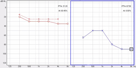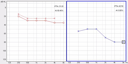 <span style="font-size:16px;"> 純音聽閾測試是聽力學所有測試項目中最基本的一項內容,包括氣導(AC)、骨導(BC)、最舒適閾(MCL)與不舒適閾(UCL)測試。測試結果能夠直接反映患者雙耳的聽力損失程度、性質與動態范圍,還能夠間接反映患者的患病位置、病因與助聽后效果。</span></p><p><span style="font-size:16px;"> 一般地,整個檢查控制在10分鐘左右,既能全面做完檢查,又不至患者疲憊而影響主觀反應。</span></p><p><span style="font-size:16px;"> 純音聽閾測試是最考驗聽力學工作者實際工作能力的一項基本內容:</span></p><p><span style="font-size:16px;"> 1、若患者曾長期暴露于噪聲中,且無其它致使聽損因素,很可能在3 kHz或6 kHz出現明顯的下降,聽力曲線呈現“V”字形,所以除了常規的倍頻程頻率外,還要加測這兩個頻率,否則就犧牲了多通道助聽器的意義;</span></p><p><span style="font-size:16px;"> 除了有過噪聲接觸史的患者需要加測半倍頻程外,涉及聲場助聽聽閾評估、賠償等情況都需要加測半倍頻程。</span></p><p><span style="font-size:16px;"> 耳鳴困擾的患者,注意避免與耳鳴聲類似的純音,若還用純音作為刺激聲,患者就會分辨不清,出現假陽性或假陰性。所以,測試者要換成囀音,既有別于耳鳴聲,又具有頻率特異性。</span></p><p><span style="font-size:16px;"> 2、不舒適閾反映患者對大聲的忍耐力,不舒適閾與氣導的差值能顯示患者的動態范圍,指導驗配師調節助聽器的最大輸出。</span></p><p><span style="font-size:16px;"> 不舒適閾測試頻率是否越多越好呢?非也。測得頻率過多,一會引起患者疲勞或不適,二是沒必要,大多數助聽器的最大輸出是一個整體,不能像調增益和壓縮那樣分通道,所以測多了并無好處,一般測0.5、1、2、4 kHz。</span></p><p><span style="font-size:16px;"> 3、如果兩側聽力有明顯差異,此時就要準備好掩蔽了,分為氣導掩蔽與骨導掩蔽。</span></p><p><span style="font-size:16px;"> (1)氣導掩蔽的判斷有兩個原則,只要符合其中一個原則,就需要重新測差耳氣導。具體做法是:</span></p><p><span style="font-size:16px;"> 測試完雙耳氣導,若發現某一頻率差耳氣導閾值比好耳氣導閾值多40 dB以上就要懷疑有可能是好耳偷聽的,需要給好耳氣導加掩蔽聲;</span></p><p><span style="font-size:16px;"> 測試完雙耳氣導與好耳骨導,若發現某一頻率差耳氣導閾值比好耳骨導閾值多40 dB以上就要懷疑有可能是好耳偷聽的,需要給好耳氣導加掩蔽聲。</span></p><p><span style="font-size:16px;"> 下面為未掩蔽的聽力圖:</span></p><center><span style="font-size:16px;"><img alt="" src="/upfiles/201809180234471614.png" width="440" height="220" /></span></center><p></p><p><span style="font-size:16px;"> 下圖為掩蔽后的左耳真實氣導值:</span></p><center><span style="font-size:16px;"><img alt="" src="/upfiles/201809180234541797.png" width="440" height="220" /></span></center><p></p><p><span style="font-size:16px;"> (2)骨導掩蔽的判斷原則:</span></p><p><span style="font-size:16px;"> 測試完雙耳氣導與好耳骨導,若發現某一頻率差耳氣導閾值比好耳骨導閾值大于等于15 dB就必須予以掩蔽,重測骨導。下圖為右耳氣導加掩蔽后左耳骨導的真實值:</span></p><center><span style="font-size:16px;"><img alt="" src="/upfiles/201809180235004928.png" width="440" height="220" /></span></center><p></p><p><span style="font-size:16px;"> 注意:</span></p><p><span style="font-size:16px;"> 1)掩蔽的規則要按順序適用;</span></p><p><span style="font-size:16px;"> 2)各頻率根據規則決定是否需要加掩蔽;</span></p><p><span style="font-size:16px;"> 3)很少需要掩蔽所有頻率,通常氣導掩蔽頻率不應超三個,骨導掩蔽頻率不應超兩個,否則受試者會疲憊不堪。</span></p><p><span style="font-size:16px;"> 醫院測聽的主要目的是診斷和鑒別聽力損失的性質和程度,驗配中心的主要目的是盡可能地幫助患者選擇并調試好助聽器。</span></p><p><span style="font-size:16px;"> 更多詳情請登錄www.hljhqw.com</span></p>" />