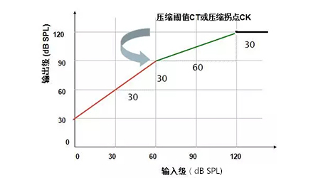 顧名思義,壓縮就是把超過一定強度的聲音減小至聽損患者縮小的殘余聽覺動態(tài)范圍里。相較于線性放大,壓縮可以有效達到“小聲聽得見,大聲受得了”的要求,尤其適用于感音神經(jīng)性患者。</p><p> 壓縮參數(shù)主要有三個:壓縮拐點/壓縮閾值(CK/CT)、壓縮比(CR)與壓縮時間(起效時間AT,釋放時間RT)。下圖:橫坐標代表輸入級,即未經(jīng)助聽器放大的聲音;縱坐標代表輸出級,即放大后的聲音。輸入與輸出的關(guān)系:輸出級=輸入級+增益,亦可表示:放大后的聲音=放大前的聲音+放大量。有了這個基礎(chǔ),我們就可以清楚地理解這兩個參數(shù)的含義并進行調(diào)節(jié)。</p><p> 1、壓縮拐點(CK):線性放大與壓縮放大的臨界輸入級,此處為60 dB SPL,即輸入聲強度在60 dB SPL以下時為線性放大,超過60 dB SPL為壓縮放大。①紅線的輸入級范圍為0~60 dB,這段的聲音為線性放大,隨意找一個輸入級,用它對應(yīng)的輸出級減去輸入級,得出線性放大的增益為30 dB;②當輸入級大于60 dB時,綠色曲線為壓縮放大,輸出與對應(yīng)輸入的差值不再是30 dB,而是隨著輸入級增加,增益逐漸減小;③當輸出達到最大輸出限制時,輸出不再增大,保持在最大輸出限制位置。</p><p> </p><center><img alt="" src="/upfiles/201904180248249754.png" width="440" height="250" /></center><p></p><p> 2、壓縮比(CR):輸入級差值與輸出級差值的比值。上圖中線性狀態(tài)時壓縮比為1:1,可以找兩對數(shù)值,(輸入60-輸入0)/(輸出90-輸出30)=60/60=1:1。壓縮狀態(tài)時壓縮比為2:1,同樣可以找兩對數(shù)值,(輸入120-輸入60)/(輸出120-輸出90)=60/30=2:1。</p><p> 3、壓縮方式(CM):由于起效時間(AT)與釋放時間(RT)的不同組合構(gòu)成不同的壓縮方式。</p><p> 助聽器由線性變換到壓縮時所需的穩(wěn)定時間為起效時間。起效時間短,說明對大聲壓縮及時,不會造成聽力傷害;起效時間長,說明對大聲壓縮緩慢,有可能短暫感覺刺耳,但可以最大程度還原小聲與大聲的強度差異感。</p><p> 助聽器由壓縮回到線性時所需的穩(wěn)定時間為釋放時間。釋放時間短,說明對小聲及時線性放大,避免小聲聽不見;釋放時間長,說明對小聲還在壓縮,放大不及時,有可能小聲聽不見,但可以最大程度還原大聲和小聲的強度差異感。</p><p> </p><center><img alt="" src="/upfiles/201904180248302960.png" width="440" height="250" /></center><p></p><p> 我們可以做個比喻來了解壓縮的概念。假使你在高速路上,突然前方出現(xiàn)一個大大的警示牌,提示有事故發(fā)生,這時你需要迅速踩剎車以防撞擊。越早踩剎車相當于越早壓縮(壓縮拐點越小),剎車的力度越大相當于壓縮比越大,開始剎車至?xí)r速降至安全時速所需時間相當于起效時間,過了事故點踩油門,車速恢復(fù)至高速所需時間相當于釋放時間。</p><p> 壓縮是為了保護人們聽覺系統(tǒng)免受瞬間或持續(xù)中、大強度聲音的刺激,同時又能有效放大各種小聲的基本技術(shù)手段,可以使小聲、中等聲和大聲無一遺漏地進入聽障患者縮小的聽覺動態(tài)范圍中。</p><p> 恰當?shù)膲嚎s拐點與壓縮比滿足了聽障患者達到“小聲聽得見、大聲受得了”的要求,而壓縮的起效時間與釋放時間設(shè)定需要考慮聽障患者個性化的聆聽喜好。</p><p> 起效時間與釋放時間都短,優(yōu)點是小聲放大及時、大聲壓縮及時,即小聲聽得到大聲不覺吵,缺點是大小聲強度差異感不大;起效時間短釋放時間長,優(yōu)點是大小聲強度差異感真實,音節(jié)間噪聲小,缺點是有可能小聲放大不足。</p><p> 事實上,各企業(yè)的助聽器軟件往往可以直接調(diào)節(jié)輕聲增益、中等聲增益、大聲增益與主增益而間接控制壓縮參數(shù),有的軟件可見一套CK/CR,有的軟件可見兩套CK/CR。有些軟件會自動默認為自適應(yīng)壓縮方式,能夠根據(jù)聲音強度差異自動調(diào)整。</p><p> 下圖匯總了對不同強度聲音不適的解決辦法,供大家參考。</p><p> </p><center><img alt="" src="/upfiles/201904180248355643.png" width="582" height="219" /></center><p></p><p> 更多詳情請登錄聽覺有道助聽器www.hljhqw.com</p>" />