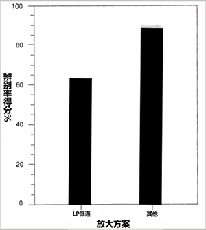 此外,分別測試每個受試者在低通(LP)和其他放大方案下的高頻輔音辨別率得分,結果顯示,其他放大方案都高于低通(LP)的輔音辨別率得分,如下圖所示。