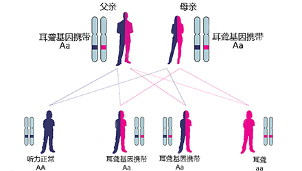 GJB2基因突變屬于常染色體隱性遺傳,這也就意味著兩個攜帶該突變基因的正常父母有概率會生出一個患兒。