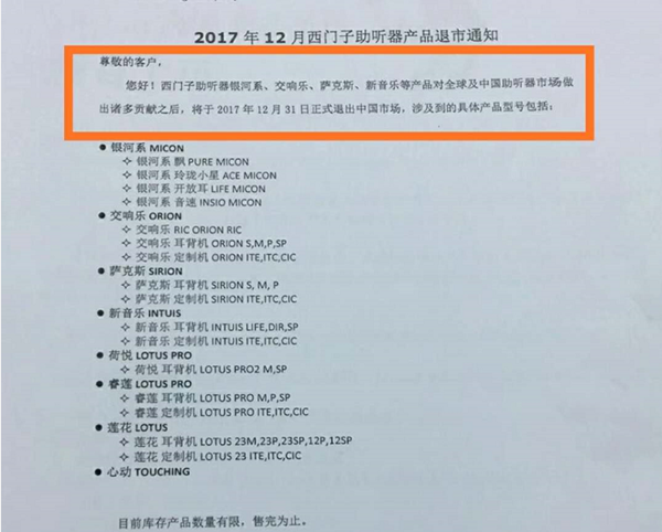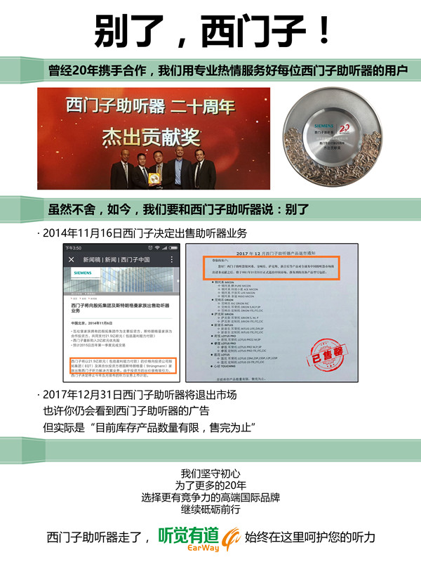 <p microsoft="" yahei="" ui="" simsun="" segoe="" tahoma="" helvetica="" sans-serif="" font-size:="" 14px="" text-align:="" center="" style="padding: 5px 0px; margin: 0px; color: rgb(51, 51, 51); font-family: "Microsoft YaHei UI", "Microsoft YaHei", SimSun, "Segoe UI", Tahoma, Helvetica, sans-serif; font-size: 16px; text-align: center;"><img src="http://www.hljhqw.com/upfiles/201712110502357735.jpg" alt="" style="border: 0px;" /></p><p microsoft="" yahei="" ui="" simsun="" segoe="" tahoma="" helvetica="" sans-serif="" font-size:="" 14px="" text-align:="" center="" style="padding: 5px 0px; margin: 0px; color: rgb(51, 51, 51); font-family: "Microsoft YaHei UI", "Microsoft YaHei", SimSun, "Segoe UI", Tahoma, Helvetica, sans-serif; font-size: 16px; text-align: center;"><br /></p><p microsoft="" yahei="" ui="" simsun="" segoe="" tahoma="" helvetica="" sans-serif="" font-size:="" 14px="" text-align:="" center="" style="padding: 5px 0px; margin: 0px; color: rgb(51, 51, 51); font-family: "Microsoft YaHei UI", "Microsoft YaHei", SimSun, "Segoe UI", Tahoma, Helvetica, sans-serif; font-size: 16px; text-align: center;"><img src="http://www.hljhqw.com/upfiles/201712201117438957.jpg" alt="" style="border: 0px;" /><br /></p><p microsoft="" yahei="" ui="" simsun="" segoe="" tahoma="" helvetica="" sans-serif="" font-size:="" 14px="" text-align:="" center="" style="padding: 5px 0px; margin: 0px; color: rgb(51, 51, 51); font-family: "Microsoft YaHei UI", "Microsoft YaHei", SimSun, "Segoe UI", Tahoma, Helvetica, sans-serif; font-size: 16px; text-align: center;"><br /></p><p microsoft="" yahei="" ui="" simsun="" segoe="" tahoma="" helvetica="" sans-serif="" font-size:="" 14px="" text-align:="" center="" style="padding: 5px 0px; margin: 0px; color: rgb(51, 51, 51); font-family: "Microsoft YaHei UI", "Microsoft YaHei", SimSun, "Segoe UI", Tahoma, Helvetica, sans-serif; font-size: 16px; text-align: center;">2014年11月16日西門子決定出售助聽器業務</p><p microsoft="" yahei="" ui="" simsun="" segoe="" tahoma="" helvetica="" sans-serif="" font-size:="" 14px="" text-align:="" center="" style="padding: 5px 0px; margin: 0px; color: rgb(51, 51, 51); font-family: "Microsoft YaHei UI", "Microsoft YaHei", SimSun, "Segoe UI", Tahoma, Helvetica, sans-serif; font-size: 16px; text-align: center;"> </p><center microsoft="" yahei="" ui="" simsun="" segoe="" tahoma="" helvetica="" sans-serif="" font-size:="" 14px="" style="color: rgb(51, 51, 51); font-family: "Microsoft YaHei UI", "Microsoft YaHei", SimSun, "Segoe UI", Tahoma, Helvetica, sans-serif; font-size: 16px;"><img src="http://www.hljhqw.com/upfiles/20171211050740709.jpg" alt="" style="border: 0px;" /><br /></center><center microsoft="" yahei="" ui="" simsun="" segoe="" tahoma="" helvetica="" sans-serif="" font-size:="" 14px="" style="color: rgb(51, 51, 51); font-family: "Microsoft YaHei UI", "Microsoft YaHei", SimSun, "Segoe UI", Tahoma, Helvetica, sans-serif; font-size: 16px;"><br /></center><p microsoft="" yahei="" ui="" simsun="" segoe="" tahoma="" helvetica="" sans-serif="" font-size:="" 14px="" text-align:="" center="" style="padding: 5px 0px; margin: 0px; color: rgb(51, 51, 51); font-family: "Microsoft YaHei UI", "Microsoft YaHei", SimSun, "Segoe UI", Tahoma, Helvetica, sans-serif; font-size: 16px; text-align: center;">2017年12月31日西門子助聽器將正式退出中國市場</p><p microsoft="" yahei="" ui="" simsun="" segoe="" tahoma="" helvetica="" sans-serif="" font-size:="" 14px="" text-align:="" center="" style="padding: 5px 0px; margin: 0px; color: rgb(51, 51, 51); font-family: "Microsoft YaHei UI", "Microsoft YaHei", SimSun, "Segoe UI", Tahoma, Helvetica, sans-serif; font-size: 16px; text-align: center;"> </p><center microsoft="" yahei="" ui="" simsun="" segoe="" tahoma="" helvetica="" sans-serif="" font-size:="" 14px="" style="color: rgb(51, 51, 51); font-family: "Microsoft YaHei UI", "Microsoft YaHei", SimSun, "Segoe UI", Tahoma, Helvetica, sans-serif; font-size: 16px;"><img src="http://www.hljhqw.com/upfiles/201712110508305244.png" alt="" style="border: 0px;" /><br /></center><center microsoft="" yahei="" ui="" simsun="" segoe="" tahoma="" helvetica="" sans-serif="" font-size:="" 14px="" style="color: rgb(51, 51, 51); font-family: "Microsoft YaHei UI", "Microsoft YaHei", SimSun, "Segoe UI", Tahoma, Helvetica, sans-serif; font-size: 16px;"><br /></center><p microsoft="" yahei="" ui="" simsun="" segoe="" tahoma="" helvetica="" sans-serif="" font-size:="" 14px="" text-align:="" center="" style="padding: 5px 0px; margin: 0px; color: rgb(51, 51, 51); font-family: "Microsoft YaHei UI", "Microsoft YaHei", SimSun, "Segoe UI", Tahoma, Helvetica, sans-serif; font-size: 16px; text-align: center;">銀河系、交響樂、薩克斯、新音樂、荷悅、睿蓮、蓮花、心動……</p><p microsoft="" yahei="" ui="" simsun="" segoe="" tahoma="" helvetica="" sans-serif="" font-size:="" 14px="" text-align:="" center="" style="padding: 5px 0px; margin: 0px; color: rgb(51, 51, 51); font-family: "Microsoft YaHei UI", "Microsoft YaHei", SimSun, "Segoe UI", Tahoma, Helvetica, sans-serif; font-size: 16px; text-align: center;">西門子助聽器系列產品悉數退市</p><p microsoft="" yahei="" ui="" simsun="" segoe="" tahoma="" helvetica="" sans-serif="" font-size:="" 14px="" text-align:="" center="" style="padding: 5px 0px; margin: 0px; color: rgb(51, 51, 51); font-family: "Microsoft YaHei UI", "Microsoft YaHei", SimSun, "Segoe UI", Tahoma, Helvetica, sans-serif; font-size: 16px; text-align: center;"> </p><center microsoft="" yahei="" ui="" simsun="" segoe="" tahoma="" helvetica="" sans-serif="" font-size:="" 14px="" style="color: rgb(51, 51, 51); font-family: "Microsoft YaHei UI", "Microsoft YaHei", SimSun, "Segoe UI", Tahoma, Helvetica, sans-serif; font-size: 16px;"><img src="http://www.hljhqw.com/upfiles/201712110509096639.jpg" alt="" style="border: 0px;" /><br /></center><p microsoft="" yahei="" ui="" simsun="" segoe="" tahoma="" helvetica="" sans-