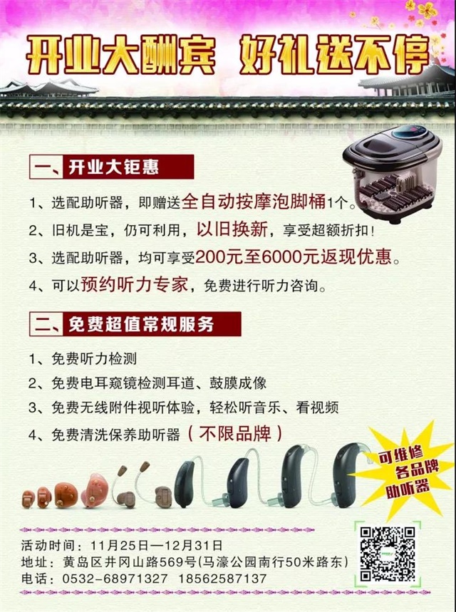 <span style="font-size:16px;"> 大家好,我們是 聽覺有道 。</span></p><p><span style="font-size:16px;"> 2017年11月24日上午8點58分,聽覺有道青島開發區井岡山路中心盛大開業!</span></p><p><span style="font-size:16px;"><br /></span></p><p><center><img src="http://www.hljhqw.com/upfiles/201801230535003010.jpg" style="text-align: -webkit-center;" alt="" /></center><center><br /></center></p><p></p><p><span style="font-size:16px;"> 升級之后再升級,開發區井岡山路中心店是我們向前邁出去的標桿店,創新的助聽器行業內裝理念,是對行業未來發展趨勢的一次大膽探索。</span></p><p><span style="font-size:16px;"> 趕著吉時,燃起鞭炮,紀念這喜慶的日子。</span></p><p><span style="font-size:16px;"> 青島開發區井岡山路中心是我們山東省內第25家門店,當天受邀的新老客戶都紛紛進店見證了這一難忘時刻。</span></p><p><span style="font-size:16px;"><br /></span></p><p style="text-align: center;"><span style="font-size:16px;"> <img src="http://www.hljhqw.com/upfiles/201801230535073126.jpg" style="text-align: -webkit-center;" alt="" /></span></p><center><br /></center><p></p><p><span style="font-size:16px;"> 當受邀用戶全都到場的時候,徐總給他們奉上了伴手禮包,并表達了多年來感謝用戶的支持與厚愛。</span></p><p><span style="font-size:16px;"> 稍后驗配專家,依次免費為新老用戶進行聽力測聽、耳道檢查、產品深度保養等貼心服務。</span></p><p><span style="font-size:16px;"><br /></span></p><p style="text-align: center;"><span style="font-size:16px;"> <img src="/upfiles/201801230535521781.jpg" alt="" /></span></p><p style="text-align: center;"><span style="font-size:16px;"><br /></span></p><blockquote style="margin: 0 0 0 40px; border: none; padding: 0px;"><p style="text-align: center;"> <img src="/upfiles/201801230536013059.jpg" alt="" /></p></blockquote><p></p><p><span style="font-size:16px;"> 不忘初心,破繭而出。聽覺有道將繼續為廣大聽障人士提供專業極致的聽力解決方案和規范完美的聽覺護理服務!</span></p>" />