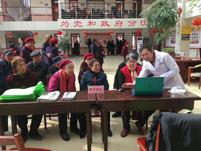 今天,青島聽覺有道助聽器驗配中心全體工作人員一早就來到養老院,為院里老人家傳授聽力健康知識,讓老年人更多認識聽力知識,做到日常生活中保護聽力,預防聽力損失!并為他們免費檢查聽力,提供助聽器維護服務。