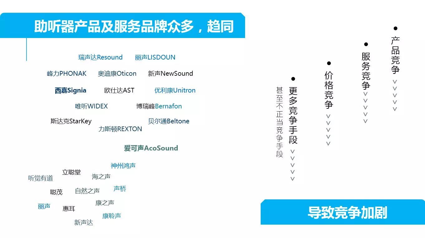 <span style="font-size:16px;"> 2018 年 11 月 16 日,由北京聽力協會主辦、聽力服務行業委員會協辦的“2018新聲代聽力行業峰會”在蘇州圓滿閉幕。來自全國各地的助聽器驗配師、門店經營者、國內外制造商和經銷商的管理者共 200 多人參加了大會。本次大會歷時 3 天,會議包含了 1 個小型成員會、1 場晚宴、1 場重要發布會、4 場主題論壇、1 場案例分析、2 場圓桌論壇、3 場企業走訪,共20位主題演講嘉賓和10位圓桌論壇嘉賓做了精彩分享。</span></p><p><span style="font-size:16px;"><img src="/upfiles/201812180855261075.jpg" alt="" /><br /></span></p><span style="font-size:16px;"> 李鵬,愛可聲品牌助聽器創始人,杭州愛聽科技有限公司董事長;浙江大學生物醫學工程專業博士;浙江大學e-works創業實驗室創業導師;浙江大學十佳創業之星;浙江大學校友會理事;全國助聽器人工耳蝸專業委員會會員;中國儀器儀表學會理事。<br /> 11月16日上午,在2018新聲代聽力行業峰會“大市場大競合”的主題論壇中,來自愛可聲品牌助聽器創始人李鵬先生做了 “國產助聽器品牌如何差異化發展”的主題發言。<br /></span><p><span style="font-size:16px;"> 目前中國聽力行業,正是產品品牌、服務品牌百花齊放的時代。中國擁有超過10家產品品牌。對于經銷商來講,面對產品品牌的選擇異常多。在當下,產品、服務越來越趨同,這也意味著市場競爭將非常激烈。</span></p><p><span style="font-size:16px;"><img src="/upfiles/201812180856004630.jpg" alt="" /><br /></span></p><span style="font-size:16px;"> 有競爭,就會有利有弊。<br /> 利:產品競爭,可以促使廠商不斷創新技術、推出更高性能的產品。服務品牌競爭,使服務商越來越專業,更好的服務于客戶。<br /> 弊:惡意的價格競爭,導致終端客戶享受的綜合服務可能不是最優。<br /> 面對如此市場,如何破局?李先生強調主要在“差異化”。<br /> 李先生先引用了孫子兵法里的一句話:“凡戰者,以正合,以奇勝;故善出奇者,無窮如天地,不竭如江海”。想要破局,就要尋找可發展的空間。如電商領域,當大家覺得天貓、京東已經壟斷了中國電商行業,很難再有新的獨角獸公司時,拼多多用三年的時間做到銷售額上千億。這正說明了市場發展的無限潛力,即使是在電商這樣競爭異常激烈的行業。<br /></span><p><span style="font-size:16px;"> 接著李先生用中國手機品牌的崛起舉例說明,中國手機品牌是如何找到自己的差異化并獲得成功。</span></p><p><span style="font-size:16px;"><img src="/upfiles/20181218085700170.jpg" alt="" /><br /></span></p><span style="font-size:16px;"> 那助聽器行業如何差異化呢?李先生分享了以下四點。<br /> 1.助聽器品牌切入的差異化<br /> 分析市場情況,尋找市場空白點(痛點,盲點,關鍵點);分析自身所長,明確自身目標,確定品牌定位,如:麗聲的引以為傲的定制式助聽器。<br /> 2.產品差異性<br /> 功能、性能、定價。如:<a href="http://www.hljhqw.com/productsInfo-100596.html" target="_blank"><span style="color:#3333ff;"><strong>峰力助聽器</strong></span></a>的美人魚,主推防水功能;新聲的Bee,主推通用耳道機;愛可聲的紅寶石,主推隱形助聽器等等。<br /> 3.市場差異化<br /> 將中心放在國內還是國外,側重線上還是線下的開拓,開荒三四線還是深耕一二線? 不同的助聽器品牌根據自身企業特點有著各自不同的選擇。<br /> 4.商業模式差異化、組織形式差異化<br /> 李先生分享了愛可聲助聽器公司的一些感悟及對行業的未來的展望。<br /> 愛可聲感悟:守正出奇與雙S增長曲線雙劍合并。當公司在華麗增長時,公司的增長也許已經處于增長曲線的末端,再繼續競爭下去,曲線可能保持不變或者下滑。這時就需要出奇開辟新的增長曲線,尋找新的差異化。當曲線在華麗增長時,重心應在出奇上,開拓增長點。當開拓新增點,尋找到差異化后,重心應在守正上,在尋找到差異化后應不斷完善細節。出奇是引子,守正才是快速增長的方式。<br /> 李先生最后對行業未來做了展望。從大趨勢上說,機會依舊非常多。<br /> 老齡化社會的到來——新一代老年人消費意識的崛起;<br /> 三四線消費能力的崛起;<br /> 技術進步帶來新商業模式的機會與挑戰——例如遠程驗配會如何改變服務模式;<br /> 如何抓住行業整合的機會以及面對由此帶來的實力更強的競爭對手;<br /> 如何面對跨行業的不對稱競爭——BOSE帶來的挑戰。<br /><br /><br /> 相關推薦閱讀:<a href="http://www.hljhqw.com/newsDetail-102054.html" target="_blank"><span style="color:#3333ff;"><strong>GN Hearing與Google聯合宣布,即將實現美國貝爾通助聽器與Android設備全面直連</strong></span></a><br /><br /> 聽覺有道助聽器價格:http://www.hljhqw.com/products.html<br /><br /><br /> 發布于2018年12月18日 星期二<br /> 上午9:01分</span>" />