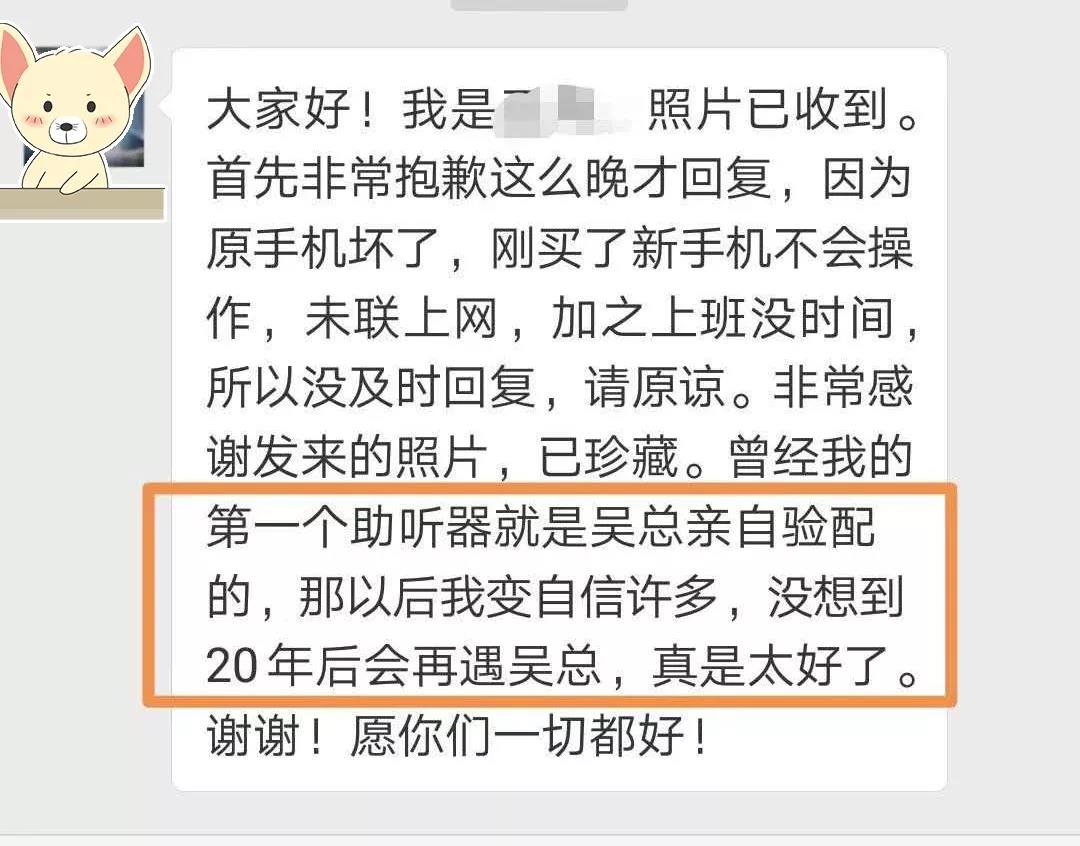 因為每年3月3日</p><p style="text-align: center;"> 是全國愛耳日,也是世界聽力日</p><p style="text-align: center;"> 我們把每年的3月</p><p style="text-align: center;"> 定義為有特殊意義的“愛耳月”</p><p style="text-align: center;"> 今年的3月</p><p style="text-align: center;"> 聽覺有道在全國各地開辦聽力大講堂</p><p style="text-align: center;"> 到社區(qū)普及聽力知識</p><p style="text-align: center;"> 驗配師們的足跡,踏過了許多角落</p><p style="text-align: center;"><img src="/upfiles/201904040216174480.gif" width="640" alt="" /><br /></p><p style="text-align: center;"> 愛耳月</p><p style="text-align: center;"> 您見證了我們這些活動嗎?</p><p style="text-align: center;"><br /></p><p style="text-align: center;"> <strong> 聽力大講堂</strong></p><p style="text-align: center;"><img src="/upfiles/201904040216244480.gif" width="640" alt="" /><br /></p><p style="text-align: center;"> 3月3日,聽覺有道聯(lián)合中國聾協(xié)等單位在廣州、深圳、成都、青島、淄博等地,舉辦聽力大講堂。</p><p style="text-align: center;"> 我們的主要任務(wù),是普及聽力知識,增強(qiáng)大家的愛耳意識,任重而道遠(yuǎn),要不斷努力。</p><p style="text-align: center;"><br /></p><p style="text-align: center;"> <strong>耳保健操教學(xué)</strong></p><p style="text-align: center;"><img src="/upfiles/20190404021632751.gif" width="640" alt="" /><br /></p><p style="text-align: center;"> 這個愛耳月,聽覺有道帶大家一起做耳保健操。</p><p style="text-align: center;"> 中醫(yī)認(rèn)為,耳為宗脈之所聚,十二經(jīng)脈皆通于耳,刺激耳朵的經(jīng)絡(luò),可激發(fā)身體潛能,調(diào)整臟腑,改善健康,預(yù)防疾病。</p><p style="text-align: center;"><br /></p><p style="text-align: center;"><strong> 聽覺有道走進(jìn)社區(qū)</strong></p><p style="text-align: center;"><img src="/upfiles/201904040410117030.gif" width="640" alt="" /><br /></p><p style="text-align: center;"> 聽覺有道走進(jìn)社區(qū),到地方街道、敬老院、鄉(xiāng)鎮(zhèn)、寫字樓等地方,免費(fèi)聽力篩查和提供聽力咨詢。</p><p style="text-align: center;"> 事實(shí)上,一直以來,幾乎每天都能在全國很多角落,找到驗配師們公益義診的身影。</p><p style="text-align: center;"><br /></p><p style="text-align: center;"> <strong>兒童聽力免費(fèi)評估</strong></p><p style="text-align: center;"><img src="/upfiles/201904040219453824.gif" width="640" alt="" /><br /></p><p style="text-align: center;"> 在廣州,聽覺有道聯(lián)合美國AB耳蝸,為廣東的小朋友提供價值800元的兒童聽力評估。</p><p style="text-align: center;"> 聽力師們使盡畢生絕學(xué),從聽力評估到康復(fù)指導(dǎo),一對多(聽力師),全程免費(fèi),絕對專業(yè)。</p><p style="text-align: center;"><br /></p><p style="text-align: center;"> <strong>基因篩查公益講座</strong></p><p style="text-align: center;"><img src="/upfiles/201904040220079015.gif" width="640" alt="" /><br /></p><p style="text-align: center;"> “我們幾代人都沒有耳聾的,為啥孩子聽力不好?”“做過基因篩查說沒有問題,我能懷二胎嗎…”</p><p style="text-align: center;"> 3月30日,聽覺有道、小百靈聯(lián)合華大基因,在山東為家長們答疑解惑。</p><p style="text-align: center;"><br /></p><p style="text-align: center;"> <strong>聽覺有道捐贈助聽器</strong></p><p style="text-align: center;"><img src="/upfiles/201904040220154347.gif" width="640" alt="" /><br /></p><p style="text-align: center;"> 四川的愛耳日活動上,聽覺有道決定為舞者余祥和捐贈助聽器,后來為其選配了一對美國貝爾通摯音系列助聽器。</p><p style="text-align: center;"> 小余本身也是一個非常努力的人,這也許就是“越努力,越幸運(yùn)”的印證吧。</p><p style="text-align: center;"><br /></p><p style="text-align: center;"> <strong>免費(fèi)試戴助聽器30天</strong></p><p style="text-align: center;"><img src="/upfiles/201904040220225775.jpg" width="640" alt="" /><br /></p><p style="text-align: center;"> 愛耳月之后,我們持續(xù)4個月“免費(fèi)試戴助聽器30天”的活動宣告結(jié)束。</p><p style="text-align: center;"> 這個活動自推出以來,就受到了廣泛歡迎和好評。</p><p style="text-align: center;"><br /></p><p style="text-align: center;"> 而四月,我們開啟的新活動是——</p><p style="text-align: center;"> <strong>電子護(hù)理寶大砍價活動</strong></p><p style="text-align: center;"><a href="http://www.hljhqw.com/newsDetail-102859.html" target="_blank"><img src="/upfiles/201904040220303300.jpg" width="640" alt="" /></a><br /></p><p style="text-align: center;"><br /></p><p style="text-align: center;"> 愛耳月</p><p style="text-align: center;"> 我們收到了一些“小歡喜”</p><p style="text-align: center;"><img src="/upfiles/201904040220397379.jpg" width="640" alt="" /><br /></p><p style="text-align: center;"> 收到滿屏的歡喜是聽力師的小確幸</p><p style="text-align: center;"><br /></p><p style="text-align: center;"><img src="/upfiles/201904040221005742.jpg" width="640" alt="" /><br /></p><p style="text-align: center;"> 再遇老朋友刷新聽力師的幸福感</p><p style="text-align: center;"><br /></p><p style="text-align: center;"><img src="/upfiles/201904040221101075.jpg" width="640" alt="" /><br /></p><p style="text-align: center;"> 聽器欣聞萬籟陳好字,好詩,好厲害</p><p style="text-align: center;"><br /></p><p style="text-align: center;"><img src="/upfiles/201904040221196440.jpg" width="640" alt="" /><br /></p><p style="text-align: center;"> 深圳周叔叔送來的筆情誼筆墨生花</p><p style="text-align: center;"><br /></p><p style="text-align: center;"><img src="/upfiles