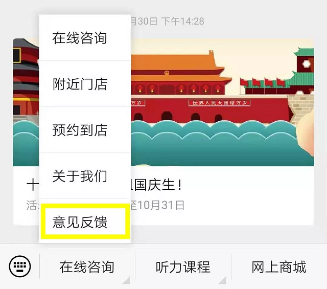 △服務號“聽覺有道客戶服務”的意見反饋入口