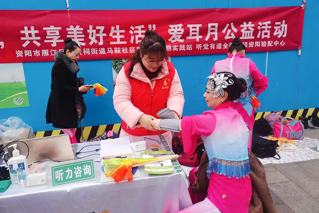 聽覺有道驗配師走進社區、公園、醫院、學校、養老院,提供聽力咨詢服務,免費測量血壓,為社會大眾帶來聽力科普和公益義診。