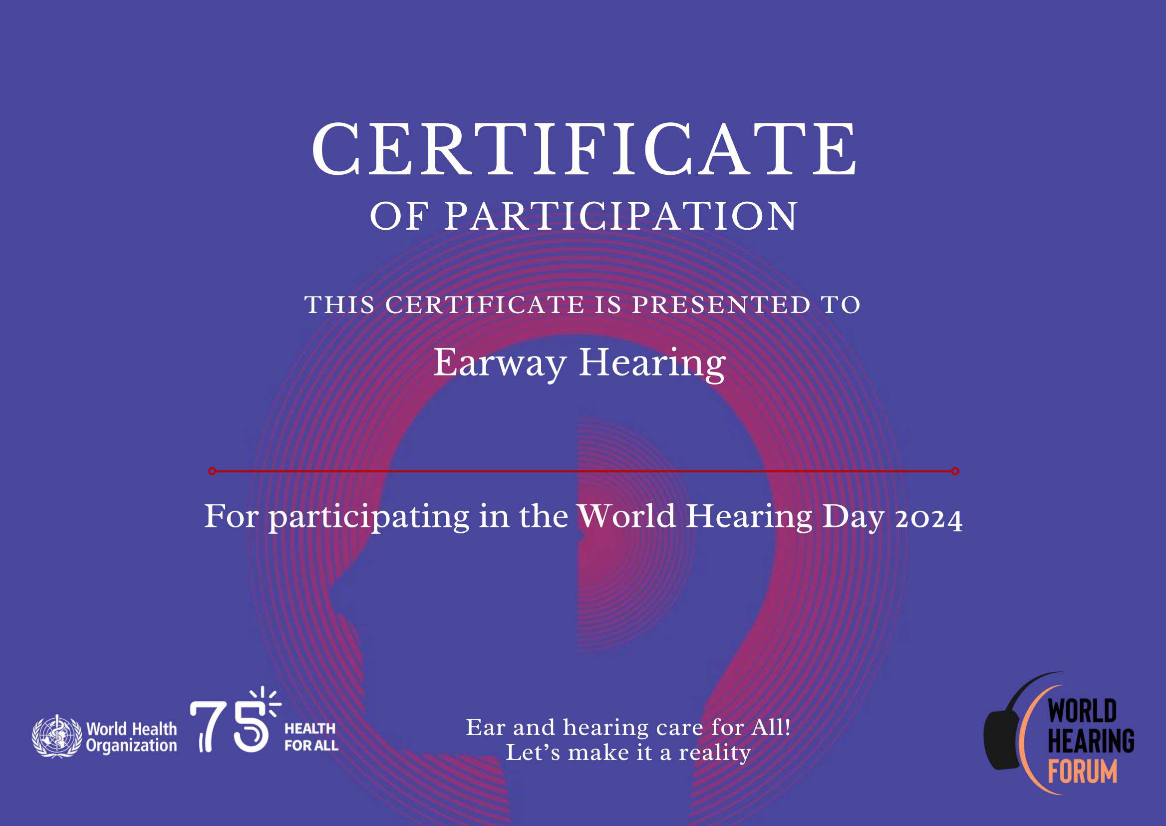 <span style="white-space:pre"> </span>7月22日,聽覺有道全國聽力連鎖再次獲世界衛生組織(WHO)授予榮譽證書!<br /><br />  連續三年獲WHO授予證書,是鼓勵,也是敦促!<br /></span><p><br /></p><p style="text-align: center;"><img src="/upfiles/202407231123513026.jpg" width="640" alt="" /><br /></p><p style="text-align: center;"><br /></p><span style="font-size:16px;">  2024年3月3日,是第25個“全國愛耳日”,也是第12個“世界聽力日”。<br /><br />  今年“世界聽力日”的主題為:“Changing mindsets:let's make ear and hearing care a reality for all!”,呼吁改變觀念,讓所有人的耳部和聽力保健成為現實。<br /><br />  聽覺有道向WHO提交的活動主題為“Better Hearing,Better Life”,更好的聆聽讓生活更美好。<br /></span><p><br /></p><p style="text-align: center;"><img src="/upfiles/202407231124159995.jpg" width="640" alt="" /><br /></p><p style="text-align: center;"><br /></p><span style="font-size:16px;">  數百家聽力中心分別在四川、廣東、福建、河南、重慶等地舉辦愛耳護耳活動,科普聽力知識、檢查耳道、測量血壓和提供康復指導。活動超過15000人參與,獲得廣泛好評。<br /><br />  我們與當地醫院、殘聯、社區、特殊學校等合作,不少用戶朋友也積極參與其中,共同宣傳“保護聽力,愛耳護耳”的重要性。<br /><br />  2024年6月24日,國家衛生健康委發布《關于開展老年聽力健康促進行動(2024—2027年)的通知》,強調聽損不良影響,號召加強聽力科普,開展聽力公益活動。<br /><br />  科技助聽,共享美好生活!聽覺有道在行動!</span>" />
